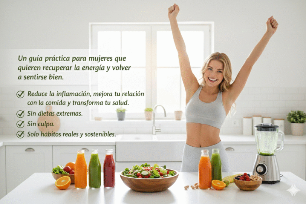 Esta guía está diseñada para mujeres que desean aprender a alimentarse de forma saludable, sin complicaciones, sin dietas extremas y sin sacrificios.